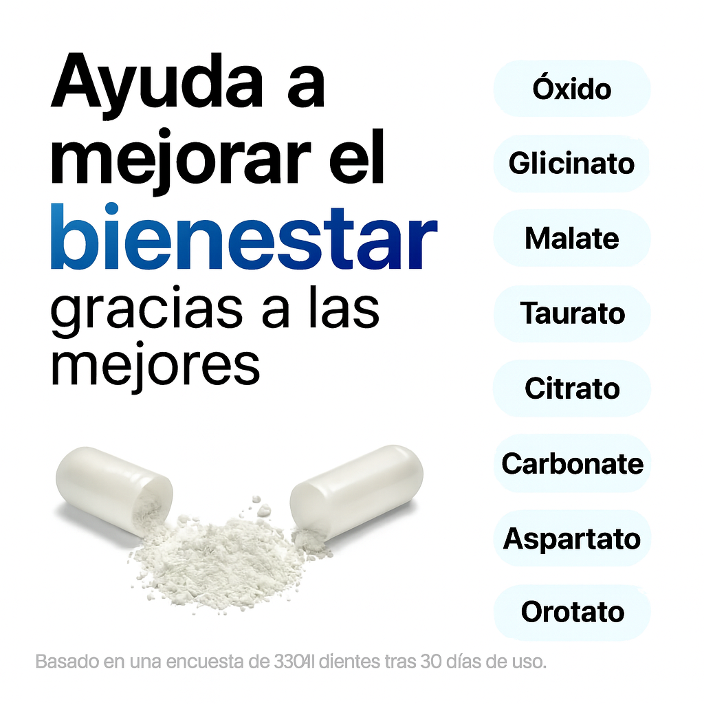 Es un suplemento dietético que combinaocho formas diferentes de magnesioen una sola fórmula. Se comercializa condosis clínicas,es 100 % natural,no contiene OMGy está diseñado para una absorción óptima.