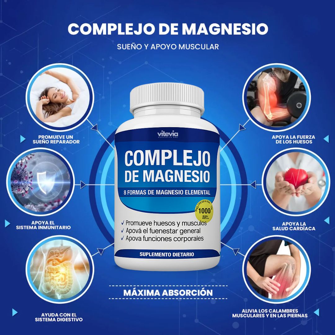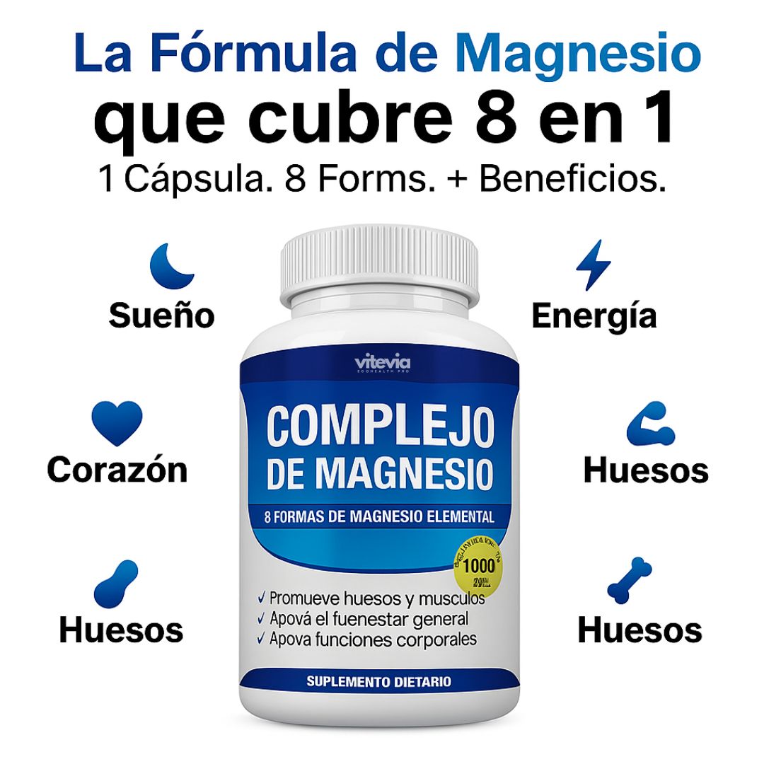 Este complejo está formulado con 8 fuentes de magnesio que pueden contribuir al bienestar general. Incorporarlo como parte de una rutina saludable podría ayudarte a sentirte con más claridad, enfoque y vitalidad durante el día. Perfecto para cualquier persona con un estilo de vida activo o exigente.